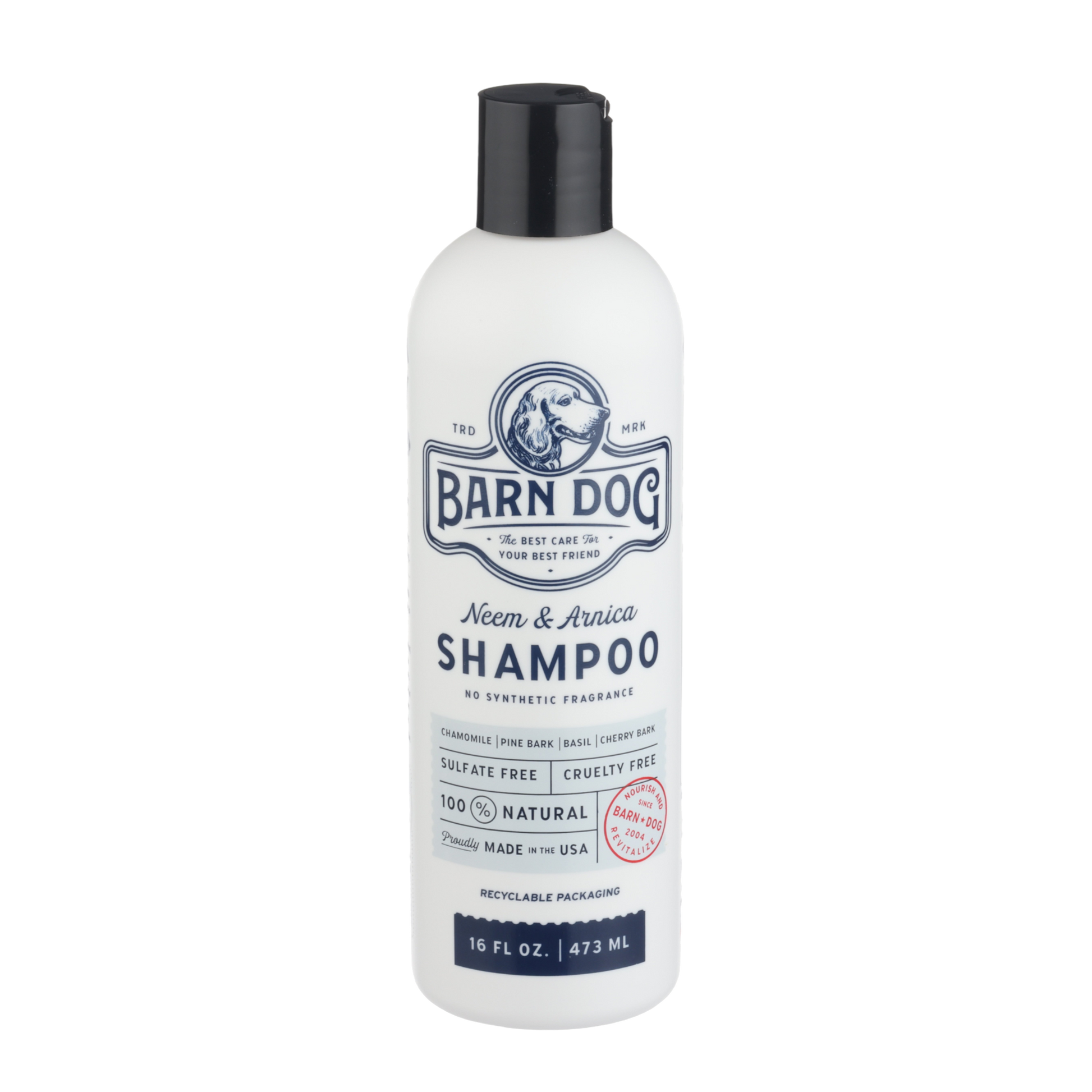 Like all Barn Dog grooming essentials, regular use promotes and nourishes the health of your dog's skin, which translates to healthy, glossy, and soft fur. Our neem-based formula is a sulfate/soap-free shampoo that won't strip the oils from the skin and coat, so you can bathe as often as you like. Soothing for sensitive skin, and powerful enough for persistent skin conditions. Other products compromise the immune system of your best friend and dry out their skin. Barn Dog formulas work holistically to restore and nurture the microbiome of the skin. No harsh soaps or synthetic perfumes in our formulas! As an added bonus, it won't wash off topical flea applications.