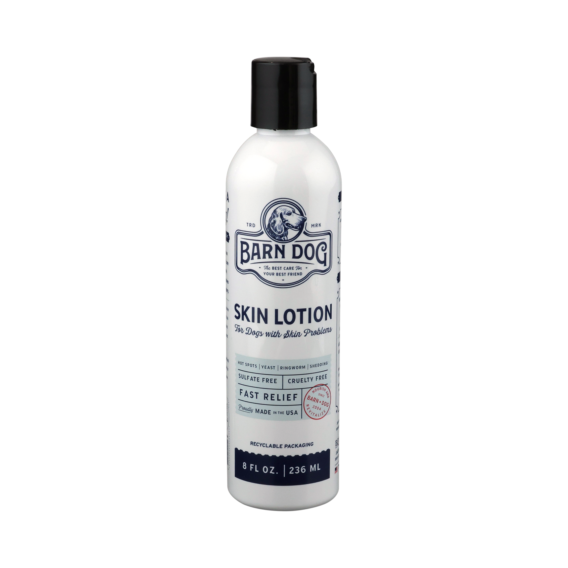 Barn Dog Skin Lotion is the first line of defense for your petβs skin needs.