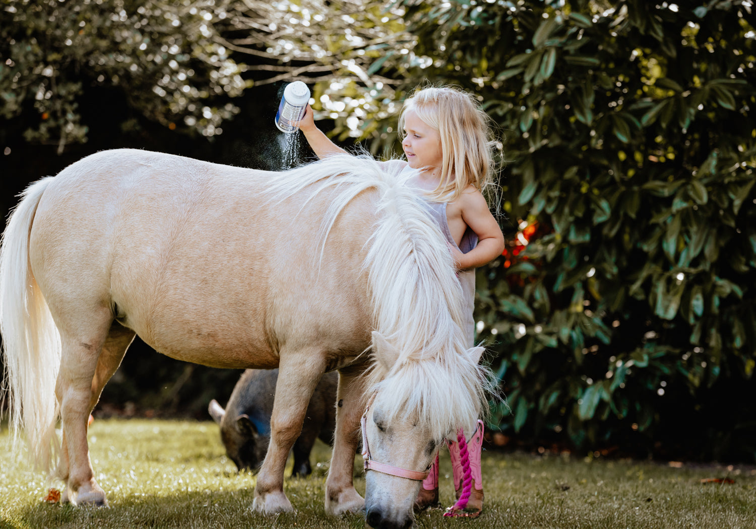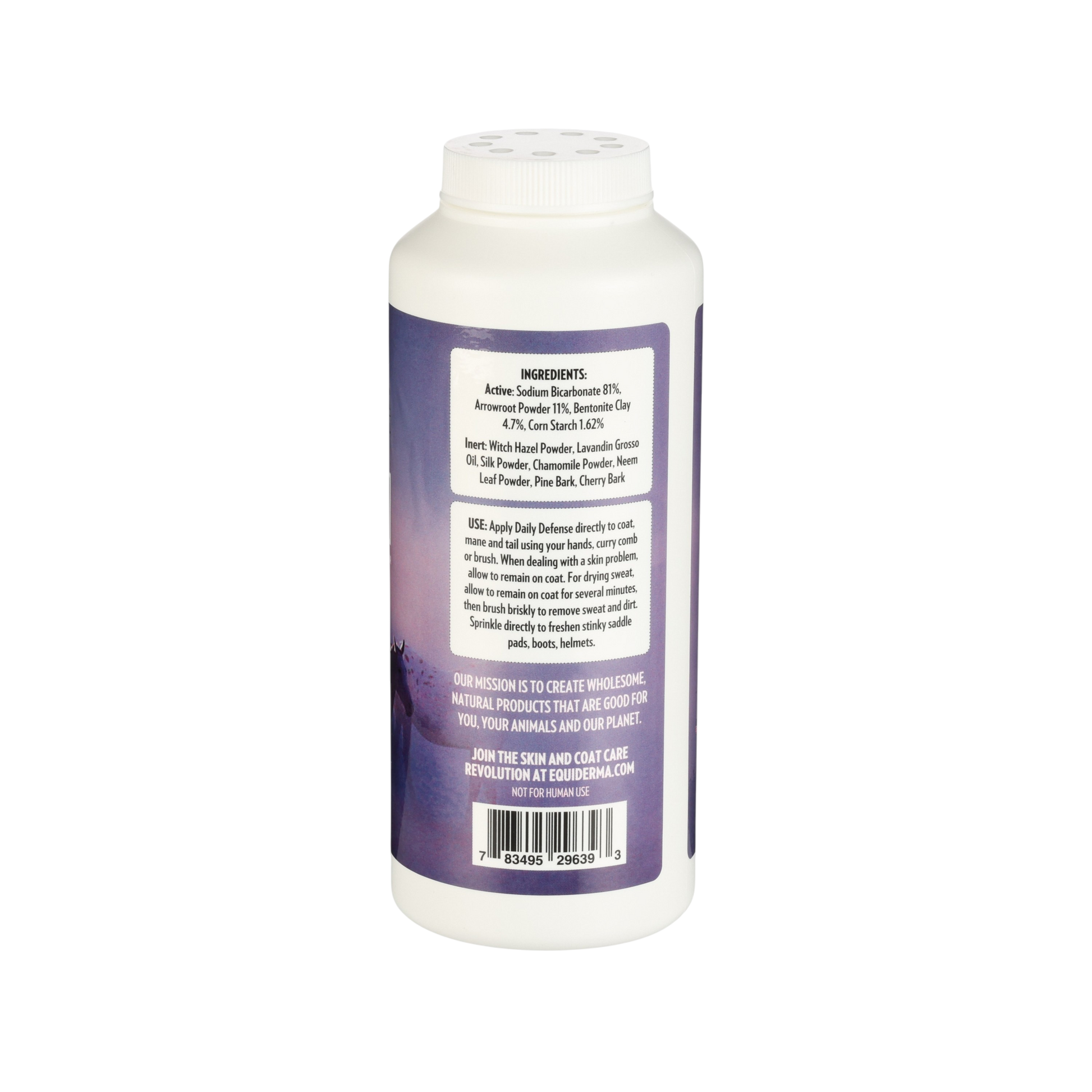 Is the weather too cold for a bath? Out on the trail with a dirty, sweaty horse and no access to water? No time to groom? Need a boost for your own hair, body, helmets or boots? Equiderma's got this! Our 100% active ingredient herbal formula is far more than your typical dry shampoo, you won't find any obnoxious perfumes here. Daily Defense calms hives, soothes sweet itch and insect bite hypersensitivity, and inhibits the growth of invasive environmental stressors. Dry up unwanted moisture that can lead to trouble, sprinkle under blankets and tack (and furniture, shoes, pet beds, you get it). Designed to improve the condition of the skin, for a shiny, glossy, healthy coat. Check out the ingredient list, you'll be hooked!